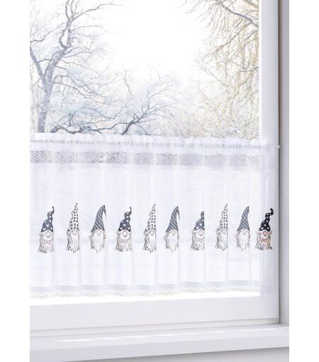 Halbtransparente Scheibengardine mit niedlichen Wichteln und Spitze am oberen und unteren Abschluss. ...