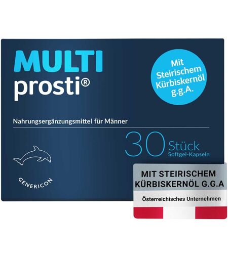 Anwendungsgebiet von Multiprosti Softgel KapselnMULTIprosti zur Unterstützung der Männergesundheit mit Vitamin B6, Selen und Zink für Testosteron, Fruchtbarkeit sowie Prostata und Blase.Multiprosti Softgel Kapseln ist ein Nahrungsergänzungsmittel - umfassende Nährstoff-Kombination, speziell für den Mann.Die Gesundheit des Mannes spielt in jeder Lebensphase eine entscheidende Rolle. Ein aktiver Lebensstil, eine ausgewogene Ernährung und gezielte Unterstützung durch wertvolle Nährstoffe können dazu beitragen, das Wohlbefinden und die Vitalität langfristig zu erhalten. Besonders die Prostata und die Blasenfunktion verdienen dabei besondere Aufmerksamkeit, da sie wesentlich zur Lebensqualität beitragen.Wichtige Nährstoffe für den männlichen KörperMULTIprosti® wurde speziell für Männer entwickelt und vereint eine sorgfältig abgestimmte Kombination aus bewährten Pflanzenextrakten, Vitaminen und Spurenelementen. Die Rezeptur enthält unter anderem Granatapfel-, Sägepalmenfrucht und Ginsengwurzelextrakt sowie echtes Steirisches Kürbiskernöl g.g.A., das aus hochwertigen steirischen Ölkürbissen gewonnen wird.Neben den wertvollen Pflanzenextrakten liefert MULTIprosti® essenzielle Mikronährstoffe zur gezielten Unterstützung der Männergesundheit. Zink trägt zur Erhaltung eines normalen Testosteronspiegels im Blut bei und spielt eine wichtige Rolle für die Fruchtbarkeit und Fortpflanzungsfunktion. Selen unterstützt die normale Spermabildung, während Vitamin B6 an der Regulierung der Hormonaktivität beteiligt ist. Zusätzlich enthält die Formel L-Arginin, eine bedeutende Aminosäure, die an verschiedenen Prozessen im Körper mitwirkt. Diese ausgewogene Kombination trägt dazu bei, den Nährstoffbedarf des männlichen Körpers optimal zu ergänzen.Steirisches Kürbiskernöl g.g.A. – gewonnen aus steirischen Ölkürbissen, geschätzt für seine ernährungsphysiologischen EigenschaftenVitamin B6 – trägt zur R ...