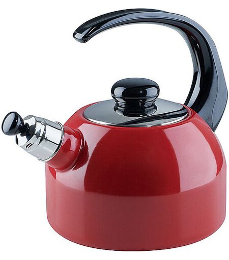 Wasserkessel mit Flöte Kunststoffgriff – rot Höhe: 21,7cm Chromdeckel mit Kunststoffknauf Flötenaufsatz am Ausgießer mit zusätzlicher dunkelblauer Innenemaillierung für besondere Beständigkeit Inhalt 2 Liter Maximal Füllmenge 1,8 Liter Schwarz Für alle Herdarten (Gas, Elektro, Glaskeramik, Induktion, offenes Feuer) geeignet Für energiesparendes Kochen Schnitt- und kratzfest Bakterienhemmend und aromaneutral Leicht zu reinigen Recyclebar CO2-neutral hergestellt in Österreich ...