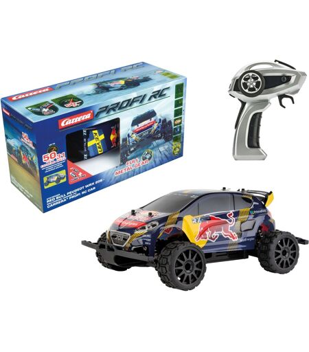 Vierradantrieb, Metallgetriebe, Öldruckstoßdämpfer und Federung: Der Red Bull Peugeot WRX 208 Rallycross aus der Carrera-Serie Profi RC ist mit allem ausgestattet, was das von den weltweiten Rallystrecken bekannte Original-Fahrzeug auszeichnet. Dieses ferngesteuerte Fahrzeug ist robust genug, um auch wilden Fahrten auf jedem Untergrund standzuhalten. Und das mit einer Geschwindigkeit von bis zu 50 km/h! Der Spritzwasserschutz sichert dieses Fahrzeug für RC-Könner auch in Pfützen oder im Schnee gut ab. Das Fahrzeug wird über einen LiFePo4-Akku mit Energie versorgt, der per USB aufgeladen wird. Ab ins Gelände mit diesem lizensierten Fahrzeug, das jede Menge Fahrspaß verspricht! ...
