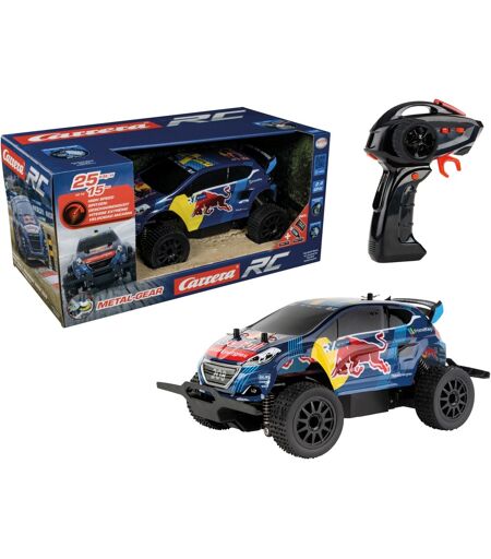 Der 2,4GHz Red Bull Peugeot WRX 208 von Carrera sieht genau wie sein großes Vorbild aus, das über die Pisten auf der ganzen Welt flitzt. Nachwuchs-RC-Piloten ab 12 Jahren können nun zur Hause in ihr eigenes Geländeabenteuer starten - und dies mit einer Geschwindigkeit von bis zu 25 km/h. Das etwa 26,5 Zentimeter lange, lizenzierte Modell ist mit Metallgetriebe und Rennkarossiere ausgestattet. Die Federung und die Luftreifen ergänzen die einfach digital proportionale Steuerungstechnologie und machen das Fahren ganz einfach. Der Peugeot WRX 208 zeigt bis zu 20 Minuten lang, was er drauf hat. Mit dem beiliegende USB-Schnellladekabel liegt die Ladezeit des Akkus bei 90 Minuten. ...