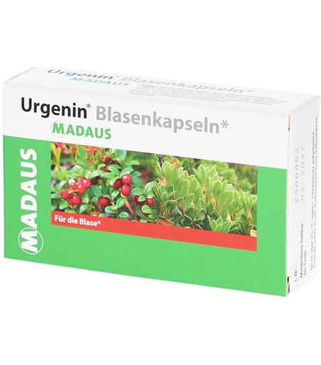 Bitte achten Sie auf eine abwechslungsreiche und ausgewogene Ernährung und gesunde Lebensweise. Für gesunde Harnwege - rein pflanzlich mit Bärentraubenblättern und Cranberry. Bei Neigung zu Blasenproblemen können Urgenin Blasenkapseln zur Reinigung der Harnwege beitragen, indem sie unerwünschte Keime aus dem Harnsystem entfernen. Unterstützend ist auf eine ausreichende Trinkmenge zu achten (kein Alkohol, kein Koffein, keine Kohlensäure). Bärentraubenblätter-Extrakt, Cranberrykonzentrat Wirkstoffe:Bärentraubenblätter-Extrakt, Cranberrykonzentrat Anwendungsgebiet:Bei Harnwegsinfekten Nieren, Harnleiter, Harnblase und Harnröhre bezeichnet man auch als die ableitenden Harnwege. Sie sind für die Ausscheidung von Giftstoffen und Abbauprodukten über den Urin zuständig und reinigen so den Körper. Insbesondere die Harnwege der Frau sind jedoch anfällig gegenüber Infektionen und Reizerscheinungen, sodass ihre Funktion oft nicht beschwerdefrei ablaufen kann. Blasenprobleme:Lästiger Harndrang und häufiges, mitunter schmerzhaftes Wasserlassen sind unangenehme Begleiterscheinungen eines Harnwegsinfektes. Diese Entzündung der Harnblase wird zumeist durch Bakterien verursacht, die über die Harnröhre in die Blase aufsteigen. Aufgrund der kürzeren Harnröhre sind Frauen davon häufiger betroffen als Männer. Hinweise für gesunde Harnwege: Zu leichte Kleidung, nasse Badehosen, aber auch in der Blase zurückgehaltener Harn begünstigen das Entstehen von schmerzhaften Harnwegsinfekten! Zum Schutz der Harnwege und ihrer Funktion können ausgewählte Pflanzenstoffe zum Einsatz kommen. Verzehrempfehlung: 3 mal täglich eine Kapsel mit Flüssigkeit einnehmen (36 mg Proanthocyanidine und 30 mg Hydrochinon/Tag). Zum Schutz der Harnwege und ihrer Funktion können ausgewählte Pflanzenstoffe eingesetzt werden. Die Blätter der Bärentraube enthalten Arbutin, Gerbstoffe und Flavonoide. Sie wirken insgesamt desinfizierend auf den Harn und unterstützend die Durchspülung und Reinigung des Harnsystems. Die Früchte der Cranberry enthalten viele für den Körper wichtige Inhaltsstoffe, die auch Schutzfunktionen ausüben, z.B. Proanthocyanidine, organische Säuren und Vitamin C. Inhalt:60 Kapslen Herstellerdaten:MADAUS GmbH51101 Köln ...