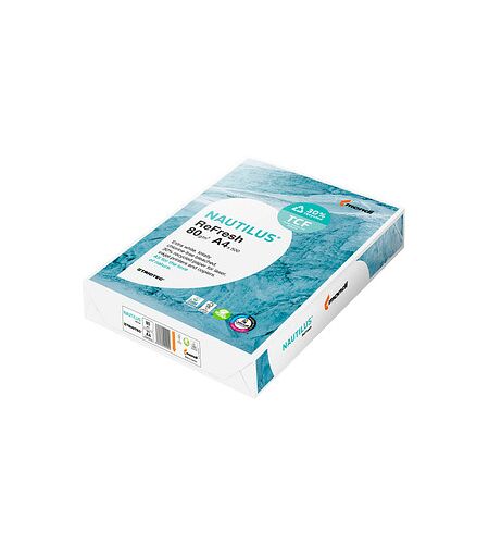 NAUTILUS® Umweltpapier Refresh DIN A4 80 g/qm 500 Blatt erfüllt all Ihre Anforderungen an eine multifunktionelle VerwendungWenn Sie auf der Suche nach einem Produkt sind, welches Sie ganz individuell für Ihre täglichen Aufgaben einsetzen können, sind Sie bei NAUTILUS® Umweltpapier Refresh DIN A4 80 g/qm 500 Blatt fündig geworden. Lesen Sie weiter um interessante Produktdetails zu erhalten!Erfahren Sie mehr zu Format und FarbeZu diesem Produkt können Sie jeden Tag greifen, denn für die meisten Ausdrucke im Arbeitsalltag eignet sich ein Hintergrund in Hochweiß ideal. Sind Sie außerdem auf der Suche nach Seiten im DIN A4 Format? Dann sind Sie hier richtig! Da es sich hierbei um das Standardformat handelt, ist das Produkt ideal für Ihre täglichen Anforderungen geeignet. Beispielsweise für Geschäftsbriefe, Rechnungen oder Reportings.Perfekt für lange Lagerungszeiten von Akten und UnterlagenIst langfristige Archivierung für Sie ein wichtiges Thema? Dann benötigen Sie NAUTILUS® Umweltpapier Refresh DIN A4 80 g/qm 500 Blatt, mit einer hohen Beständigkeit von 100 Jahren nach DIN 6738.Mit diesen Besonderheiten punktet das ProduktNAUTILUS® Umweltpapier Refresh DIN A4 80 g/qm 500 Blatt hat folgende besonderen Features: Besteht aus 70% TCF (Totally Chlorine Free) Frischfasern in den Außenschichten und 30% Recyclingfaser in der Mittelschicht Außerdem: "NAUTILUS® ReFresh wird mit der TRIOTEC®-Technologie produziert und bietet ein einzigartiges Umweltprofil: 70% TCF (Totally Chlorine Free) Frischfaser in den Außenschichten + 30% Recyclingfaser in der MittelschichtBesonders geeignet für hohe Auflagen dank der ausgezeichneten Laufeigenschaften."Entdecken Sie die vielfältigen NutzungsmöglichkeitenEingelegt werden kann das Produkt in Kopierer, Drucker, Fax-Geräte, im Speziellen in Laser, InkJet-Geräte. Sie möchten Kosten sparen, Zeit sparen und die Umwelt schonen? Dann ist NAUTILUS® Umweltpapier Refresh DIN A4 80 g/qm 500 Blatt mit der Eignung zum beidseitigen Drucken und Kopieren passend. Dank der Opazität von 93 % sind die Blätter nahezu blickdicht und das Gedruckte kommt vorne und hinten optimal zur Geltung.Welche Umweltvorteile bietet das Produkt?Sie können sicher sein, dass bei einem zertifizierten Produkt wie diesem bei der Herstellung auf einen verantwortungsvollen Umgang mit Ressourcen geachtet wurde. NAUTILUS® Umweltpapier Refresh DIN A4 80 g/qm 500 Blatt ist mit folgenden Zertifikaten ausgezeichnet: FSC®: Garantiert eine verantwortungsvolle und sozialverträgliche Herstellung.EU-Blume: Besondere Umweltverträglichkeit und vergleichsweise geringe Gesundheitsbelastung.Erfahren Sie mehr zur LaufrichtungFalls Sie die Seiten weiterverarbeiten möchten, ist die Laufrichtung interessant, welche hier Schmalbahn ist. In Laufrichtung können die Seiten beispielsweise leichter gefaltet, gefalzt oder gebogen werden. Alles zum PapiergewichtDas Produkt kann als Normalpapier, mittelschweres Papier eingruppiert werden. Dies hängt mit dem Papiergewicht von 80 g/qm zusammen,... ...
