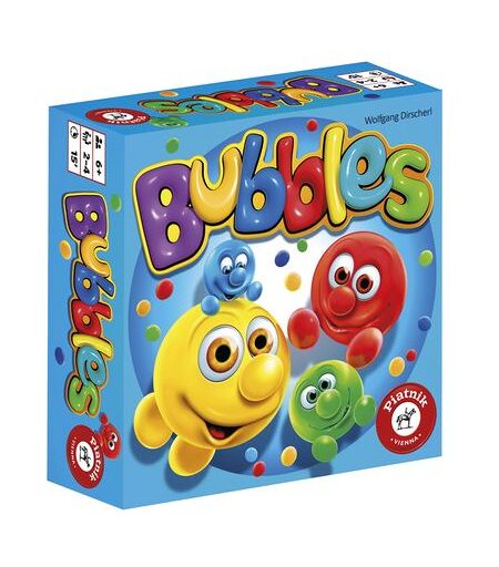 Bubbles: Verliere nicht den Überblick! Wer findet am schnellsten die Karten mit den gesuchten Bubbles? Scheinbar harmlos leuchten die lustigen Bubbles in gelb, rot, blau und grün von den Spielkarten. Allerdings wechseln die fröhlichen Gesichter immer wieder ihre Größe, weshalb man sich ganz schön konzentrieren muss, um den Überblick über die 24 Karten nicht zu verlieren. Schnelles Kombinieren und ein flinkes Auge bei der Suche nach der richtigen Bubbles-Karte bestimmt das rasante Spiel von Wolfgang Dirscherl, bei dem zwei bis vier Spieler ihren Spaß haben. Alle 24 Karten werden dabei vor Spielbeginn in der Tischmitte ausgelegt. Entsprechend dem Wurfergebnis der vier Würfel in den Farben gelb, rot, blau und grün machen sich die Spieler ab sechs Jahren auf die Suche nach der Karte, auf der die Bubbles in dieser Kombination abgebildet sind: Die größte Zahl auf einem Würfel entspricht auch dem größten Bubble in dieser Farbe, die zweitgrößte Zahl dem zweitgrößen Bubble, und so weiter. Hat ein Spieler die passende Karte entdeckt, darf er sie vor sich ablegen. Aber aufgepasst: Auf der Suche nach den nächsten Bubbles-Kombinationen kann sich ein Mitspieler diese Karte wieder schnappen, wenn sie dem Würfelergebnis entspricht! Sieger wird der Spieler, der als erster vier Karten vor sich liegen hat. Das neue Such- und Reaktionsspiel von Piatnik lässt sich in zwei Varianten spielen: Vorder- und Rückseiten der Karten sind mit der jeweils gleichen Kombination bedruckt: Für AnfÃäger eignen sich die Abbildungen mit den ihrer Größe nach sortierten Bubbles. Bei der schwierigeren Spielvariante zeigen sich die unterschiedlich großen Bubbles wild durcheinander auf den Karten und erfordern noch mehr Geschick, um sich von den frechen Gesichtern nicht in die Irre führen zu lassen. Natürlich können beide Spielvarianten auch kombiniert werden und erhöhen die Spannung beim kniffligen Suchen! ...