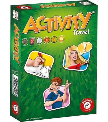 Wer ein kommunikatives Spie ü¼r unterwegs sucht, liegt mit dieser Ausgabe genau richtig. Begriffe müssen gezeichnet, pantomimisch dargestellt oder umschrieben werden. Ein Sonderwürfel bestimmt, welcher Begriff auf der Karte vermittelt werden muss. Und dann ist Kreativität gefragt. Wird das gesuchte Wort vom eigenen Team erraten? Wenn ja, darf das Team die Karte behalten. Wenn nicht, Pech gehabt. Offene Runden, bei denen alle am Spiel Beteiligten mitraten dürfen, sorgen für noch mehr Spannung. Es gewinnt das Team mit den meisten gewonnenen Karten. Activity Travel eignet sich auch gut für Einzelspieler. Spannendes Spielvergnügen ist garantiert! ...