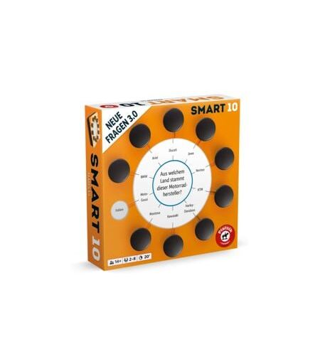 Smart 10 Zusatzfragen 3.0 erweitert die beliebte Smartbox-Reihe um spannende neue Fragen aus unterschiedlichsten Wissensgebieten. Die Packung enthält 100 doppelseitig bedruckte Zusatzkarten – insgesamt 200 Fragen mit 2.000 möglichen Antworten. Konzipiert für Quizfans ab 14 Jahren, fordert dieses Set mit echten Denkaufgaben: Welche US-Präsidenten sind im Amt verstorben? Wie heißen die Rock-Gitarristen von Led Zeppelin oder The Police mit Vornamen? In welchem Land wurden Formel‑1‑Weltmeister wie Vettel und Lauda geboren? Das bewährte Spielprinzip bleibt erhalten: Pro Frage stehen zehn Antworten zur Auswahl, die mit Markern verdeckt sind. Spieler wählen abwechselnd eine Option, decken sie mit dem Marker auf und sammeln Punkte – verlieren aber alle in der Runde gesammelten Punkte bei einem falschen Tipp. Wer klug zockt, schnappt sich einfach Punkte, strategisches Aussteigen ist ebenso möglich wie riskante Zocker-Entscheidungen. Die Karten sind vollständig kompatibel mit allen Smartboxen der Smart 10-Serie. Es können einfach 100 Karten aus der Smartbox des Originalspiels oder der Family Edition durch die Zusatzfragen ersetzt oder mit ihnen gemischt werden. So ergibt sich mehr Vielfalt, neuer Spielspaß und flexible Themenkombinationen für immer neue Quizrunden. 100 doppelseitig bedruckte Zusatzkarten mit 200 Fragen und 2.000 Antworten Themenvielfalt: Politik, Musik, Sport & mehr Einfache Integration, austauschbar oder mischbar mit Original-Smartbox Für 2 bis 8 Spieler ab 14 Jahren Nutzung nur mit Original-Smartbox möglich Ob bei Freunden, Familie oder Quiz-Events – Smart 10 Zusatzfragen 3.0 sorgt für abwechslungsreiche und fordernde Quizrunden. Wiederholungsspiele bleiben spannend und überraschend – mit querdenkertauglichen Aufgaben und neuen Wissensecken. Piatnik überzeugt erneut mit durchdachten Erweiterungen – smart, vielseitig und ideal für alle, die auch bei Quizklassikern noch Neues entdecken wollen. ...