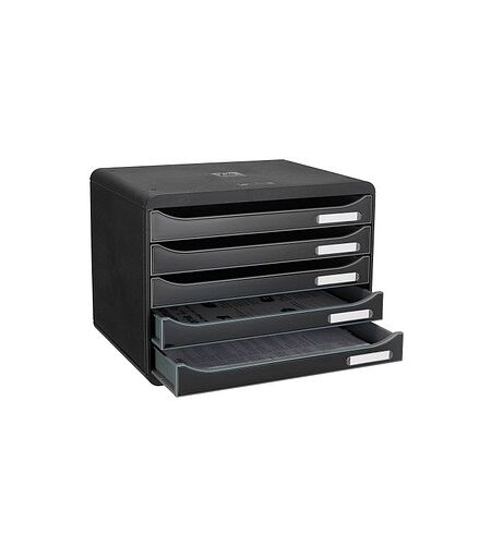 Exacompta Schubladenbox Big-Box Plus quer Classic schwarz 308714D, DIN A4 quer mit 5 Schubladen
