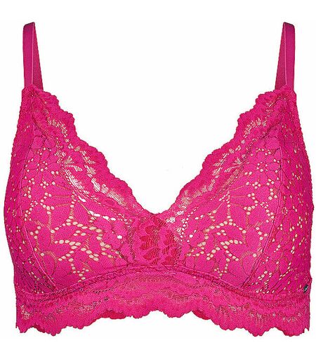 Femininer Damen Triangel-BH ohne Bügel Integrierte Pads für höchsten Komfort Cups, Seiten und Unterbrust mit Vollspitze Verstellbare Träger und Hackenverschluss Elastische Spitze in blumigem Design Farbbezeichnung: Vision Pink Material 1: 100% Polyester Material2: 88% Polyamid, 12% Elasthan ...