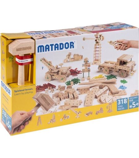 Matador Spielwaren GmbH MATADOR 11318 - Explorer E318, Baukasten, Holz, 318 Teile, Konstruktionsbaukasten, ab 5 Jahren, Spielend lernen!