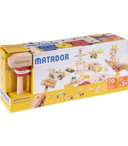 Matador Spielwaren GmbH MATADOR 21070 - Maker M070, Baukasten, Holz, 70 Teile, Konstruktionsbaukasten, ab 3 Jahren, Spielend lernen!