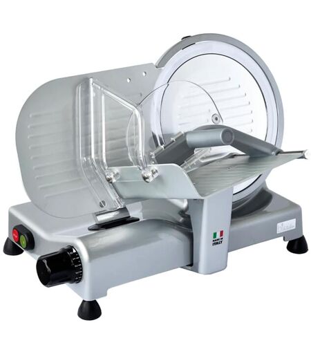 Schneiden Sie mühelos Fleisch, Käse, Brot und vieles mehr. Mit einer Leistung von 120 Watt und einem glatten, hartverchromten Hohlschliffmesser mit 22 cm Durchmesser schneiden Sie schnell und präzise. Der silberne Allesschneider verfügt über ein robustes Druckgussgehäuse und einen doppelt belüfteten Hochleistungs-Induktionsmotor, der extrem leise ist und keine Geschwindigkeitsreduzierung bei Belastung aufweist. Leistungseigenschaften max. Leistung: 120 W; für gewerblichen Einsatz geeignet; Induktionsmotor; Bedienung max. Schnittstärkeeinstellung: 14 mm; Ausstattung glattes Messer; Messer-Durchmesser: 22 cm; abnehmbarer Messerschärfer; Restehalter; Gehäuse-Eigenschaften Breite: 39 cm; Höhe: 29.5 cm; Tiefe: 31.5 cm; Gewicht: 9.75 kg; Metall-Gehäuse; Saug-/Gummi-Füße; Farben silber; ...