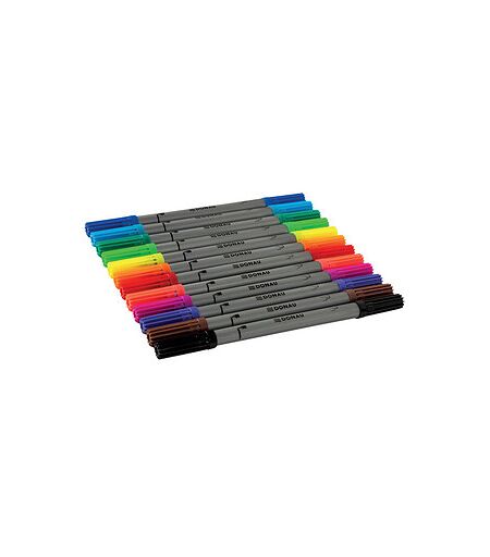 Die DONAU Filzstifte farbsortiert, 12 St. – kreativ malen, zeichnen und schreibenDie DONAU Filzstifte farbsortiert, 12 St. sind für Schule, Studium oder Büro ein echtes Muss. Unterstreichen, Skizzieren, Hervorheben – sie sind ideal geeignet, um kräftige Linien zu ziehen oder eine Fläche deckend auszumalen.Angenehme Handhabung und intensive FarbenDurch den runden Griff ist das Schreiben und Malen stets angenehm und ein variables Halten ist möglich. Was die Farbe betrifft, können Sie sich auf schönes rot, grün, blau, schwarz, gelb, orange, braun, pink, hellgrün, hellblau, lila, beige freuen.Runde, 2,0 + 3,0 + 4,0 mm breite SpitzenDank der 2 Spitzen pro Exemplar sind Sie gleich doppelt ausgerüstet. So können die beiden unterschiedlich breiten Rundspitzen für großflächiges Malen bzw. für präzise Zeichnungen genutzt werden. Hierbei erzielen die Spitzen folgende Strichstärke: 2,0 + 3,0 + 4,0 mm.Geruchsarm und auswaschbar!Da die Tinte auf Wasserbasis hergestellt ist, können Sie sie in der Regel aus der Kleidung wieder herauswaschen. Die Farbe in dem Produkt ist non-permanent, weshalb Sie sie rückstandslos wieder von glatten Oberflächen entfernen können. Hierfür reicht ein feuchtes Tuch. Weitere Eigenschaften, die der Artikel besitzt: schnell trocknend. Manche Schreibgeräte verströmen einen starken Geruch nach Chemie – dies ist hier iertzum Glück nicht der Fall.Ergänzen Sie Ihre Malutensilien!Beachten Sie bitte folgenden Sicherheitshinweis: ACHTUNG! Erstickungsgefahr (verschluckbare Kleinteile). Geliefert werden die DONAU Filzstifte farbsortiert, 12 St. in einem praktischen Karton-Etui – das schützt nicht nur den Inhalt, es erhöht auch die Chance, dass nach getaner Arbeit alles wieder sorgsam an seinen ursprünglichen Platz kommt. ...
