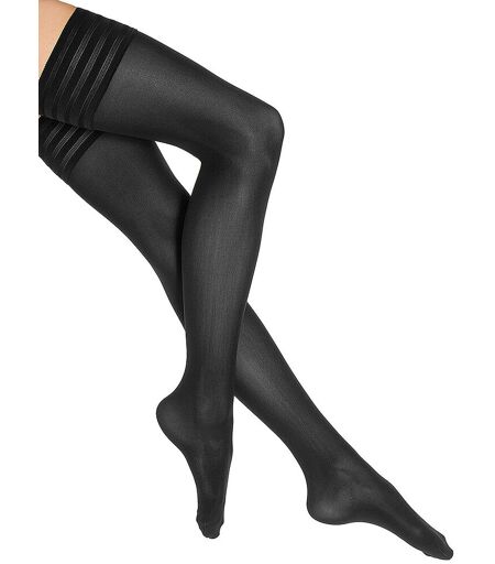 Exzellente Passform, aparter Look: Der reinste Genuss für die Beine ist dieser blickdichte Stay-Up in klassischer Mattoptik. Das exklusive Velvet-Material ist außergewöhnlich weich im Griff und sorgt für ein besonders angenehmes Tragegefühl. Exklusives Tragegefühl in außergewöhnlich gleichmäßiger Optik Breites Satinband mit opaque/transparenten Streifen Hohe Elastizität und optimale Passform durch die Verwendung von doppelt umwundenem Elastan in jeder Reihe Halterlos ...