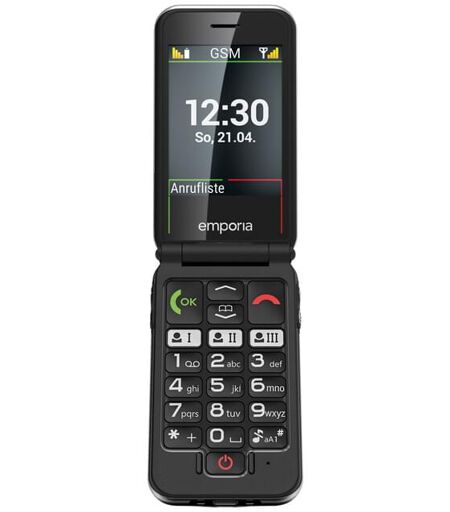 Dieses Klapp-Mobiltelefon von emporia in schwarz verbindet ansprechende Form und Funktionalität. Das Außendisplay zeigt die aktuelle Uhrzeit und eingehende Anrufe an. Farbige Symbole helfen beim Zurechtfinden im Menü. Netz-Standard 1800 MHz/900 MHz Betrieb; SMS-Funktionen MMS (Multimedia Messaging System); SMS; SMS-Speicher: 250; Kontakte per SMS empfangen; Bedienung 3 Zielwahltasten; Wahl über Großtasten; Notruftaste; Notruf mit autom. SMS; Freisprechfunktion; Sprachausgabe; Display/Anzeigen Doppel-Display (innen & außen); OLED-Außendisplay; max. Auflösung, X: 240 Pixel; max. Auflösung, Y: 320 Pixel; Display-Diagonale: 7.112 cm; Display-Diagonale: 2.8"; beleuchtetes Tastenfeld/Tastatur; Schriftgröße horiz./vertikal veränderbar; Gebühren/Daten-Verwaltung 300 Telefonbucheinträge; Taschenrechner; Kalender; Geräte-Funktionen geeignet für Hörgeräte; Rufton-Lautstärke einstellbar; mehrstimmige Ruftöne; regelbare Hörer-Lautstärke; Tastenquittungston; Tastenquittungs-Ton ausschaltbar; Vibrationsalarm; integrierte Taschenlampe; Weckfunktion; Erinnerungsfunktion für Geburtstage; Multimedia-Anwendungen 2 Megapixel Kamera; externer Speicher über microSD-Karte; max. Speicherkartenkapazität: 2 GB; Elektronik-Eigenschaften 64 MB Arbeitsspeicher; 128 MB interner Speicher; SAR-Strahlungsleistung: 0.42 W/kg; Nano-SIM Karte; Anschlüsse Bluetooth V2.1; USB-C; Headset-Anschluss; Stromversorgung Li-Ionen Akku; Kapazität, Standard Akku: 1300 mAh; ca. 360 Min. Sprechzeit; laden mit Netzteil möglich; laden mit Tischladegerät möglich; Gehäuse-Eigenschaften Bauart: Klapphandy; Breite: 5.1 cm; Höhe: 10.6 cm; Tiefe: 1.8 cm; Gewicht: 92 g; spritzwassergeschützt (IP54); Lieferung inklusive... zusätzlicher Akkudeckel ohne Notruftaste; USB-C Ladekabel mit Netzstecker; Ladeschale; Headset; Bedienungsanleitung; Farben schwarz; ...