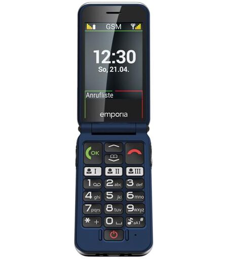 Dieses Klapp-Mobiltelefon von emporia in blau verbindet ansprechende Form und Funktionalität. Das Außendisplay zeigt die aktuelle Uhrzeit und eingehende Anrufe an. Farbige Symbole helfen beim Zurechtfinden im Menü. Netz-Standard 1800 MHz/900 MHz Betrieb; SMS-Funktionen MMS (Multimedia Messaging System); SMS; SMS-Speicher: 250; Kontakte per SMS empfangen; Bedienung 3 Zielwahltasten; Wahl über Großtasten; Notruftaste; Notruf mit autom. SMS; Freisprechfunktion; Sprachausgabe; Display/Anzeigen Doppel-Display (innen & außen); OLED-Außendisplay; max. Auflösung, X: 240 Pixel; max. Auflösung, Y: 320 Pixel; Display-Diagonale: 7.112 cm; Display-Diagonale: 2.8"; beleuchtetes Tastenfeld/Tastatur; Schriftgröße horiz./vertikal veränderbar; Gebühren/Daten-Verwaltung 300 Telefonbucheinträge; Taschenrechner; Kalender; Geräte-Funktionen geeignet für Hörgeräte; Rufton-Lautstärke einstellbar; mehrstimmige Ruftöne; regelbare Hörer-Lautstärke; Tastenquittungston; Tastenquittungs-Ton ausschaltbar; Vibrationsalarm; integrierte Taschenlampe; Weckfunktion; Erinnerungsfunktion für Geburtstage; Multimedia-Anwendungen 2 Megapixel Kamera; externer Speicher über microSD-Karte; max. Speicherkartenkapazität: 2 GB; Elektronik-Eigenschaften 64 MB Arbeitsspeicher; 128 MB interner Speicher; SAR-Strahlungsleistung: 0.42 W/kg; Nano-SIM Karte; Anschlüsse Bluetooth V2.1; USB-C; Headset-Anschluss; Stromversorgung Li-Ionen Akku; Kapazität, Standard Akku: 1300 mAh; ca. 360 Min. Sprechzeit; laden mit Netzteil möglich; laden mit Tischladegerät möglich; Gehäuse-Eigenschaften Bauart: Klapphandy; Breite: 5.1 cm; Höhe: 10.6 cm; Tiefe: 1.8 cm; Gewicht: 92 g; spritzwassergeschützt (IP54); Lieferung inklusive... zusätzlicher Akkudeckel ohne Notruftaste; USB-C Ladekabel mit Netzstecker; Ladeschale; Headset; Bedienungsanleitung; Farben blau; ...