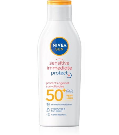 NIVEA SUN Sensitive Immediate Bräunungsmilch für empfindliche Haut SPF 50+ 200 ml