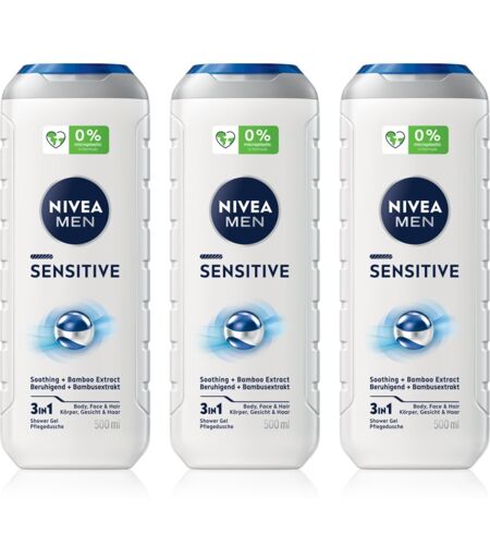 NIVEA MEN Sensitive, , Körperpflege-Sets für Herren für Herren, Das Duschbad NIVEA MEN Sensitive macht die notwendige tagtägliche Körperpflege zu einem einzigartigen erfrischenden Erlebnis. Das Set beinhaltet: 3x Duschgel für Herren 500 ml Eigenschaften: reinigt sanft die Haut des gesamten Körpers verhindert das Austrocknen Set zum Vorteilspreis Anwendung: Das Produkt auf die feuchte Haut auftragen und alle Unreinheiten abwaschen. Gründlich ausspülen. ...