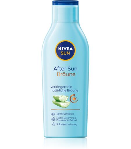 Nivea Sun After Sun & Bronze, 200 ml, Für längere Bräune für Damen, Behalten Sie Ihr Souvenir aus dem Sommerurlaub in Form einer schönen Bräune so lange wie möglich. Das Produkt Nivea Sun After Sun & Bronze lässt der sonnengestressten die notwendige Pflege zukommen und verlängert die Bräune. Ihre Haut wird somit noch lange eine gleichmäßige Bräune behalten. Eigenschaften: verlängert das gebräunte Aussehen spendet der Haut die nötige Feuchtigkeit beruhigt vollständig die Haut schränkt das Schälen der Haut ein Anwendung: Nach dem Sonnenbad mit kreisenden Bewegungen in die saubere Haut einmassieren. ...