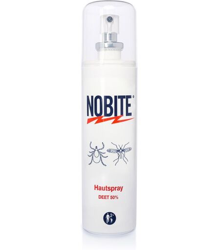 NOBITE Hautspray(Wirkstoff 50 % DEET) Für Kinder ab dem 2. vollendeten Lebensjahr und Schwangere nach dem 1. Trimester geeignetWirkstoff50 % DEETAnwendunggroßzügig – es besteht die natürliche Tendenz das Produkt zu sparsam aufzutragengleichmäßig – die Wirksamkeit des Repellents ist auf 4 cm begrenzt und ein einfaches Auftragen auf die Wangen bewirkt keinen Schutz der Naseselektiv – ein Kontakt mit Augen und Lippen ist zu vermeidenwiederholt – alle acht oder bei Temperaturen über 30°C sogar alle drei Stundenzuerst Sonnenschutz auftragen, 20 Minuten einwirken lassen, danach das RepellentDie WHO und die Deutsche Tropenmedizinische Gesellschaft (DTG) empfehlen für Aufenthalte in den Tropen bzw. Tropenreisen dieses Produkt!Hinweis:Insektenschutzmittel sicher verwenden. Vor Gebrauch stets Kennzeichnung und Produktinformation lesen. ...