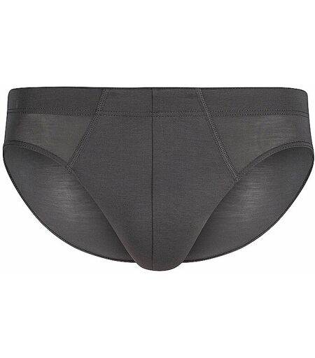 Herren Brasil Slip aus hochwertigem Modal-Mix Halb-überzogenem Bundgummi Besonders weich und atmungsaktiv Hoher Beinausschnitt Streifenmuster Aus TENCELTM Modalfasern Farbbezeichnung: Asphalt Material: 93% Modal 7% Elasthan ...
