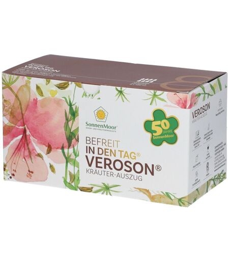 Nahrungsergänzungsmittel sind kein Ersatz für eine ausgewogene und abwechslungsreiche Ernährung und eine gesunde Lebensweise. SonnenMoor® Veroson Veroson aus dem Hause SonnenMoor ist ein Nahrungsergänzungsmittel, frei von chemischen Zusätzen. Der Kräuterauszug beinhaltet zahlreiche Kräuter, die die Darmtätigkeit auf natürliche und positive Art und Weise beeinflussen und sorgt für mehr Wohlbefinden und Zufriedenheit ohne Gewöhnungseffekte. Die Darmreinigung erfolgt schonend, ohne den Darm zu reizen und löst Ansammlungen sanft aber effektiv. Als reines Naturprodukt unterstützt es die Verdauung und die Darmflora und stabilisiert den Stoffwechsel. Der Kräuterauszug kann über einen längeren Zeitraum eingenommen werden und setzt sich aus einer ausgewogenen Kräutermischung zusammen, die Schlehdornblüten, Zichorienwurzel, Hibiskusblüten, Liebstöckelwurzel, Rhabarberwurzel, Fenchelfrüchte, Käsepappelblätter, Kamillenblüten, Labkraut, Ringelblumenblüten, Tausendgüldenkraut, Lorbeerblätter, Pfefferminzenkraut, Süßholzwurzel, Kümmelfrüchte und Faulbaum-Fluid enthält.SonnenMoor Veroson unterstützt einen normalen, regelmäßigen Stuhlgang. Bringen Sie damit Ihre Verdauung schonend ins Gleichgewicht. Wenn die Verdauung schon länger aus dem Gleichgewicht ist, empfehlen wir die Kombination mit Trinkmoor von SonnenMoor. Trägt zu regelmäßigem Stuhlgang bei Unterstützt das Verdauungssystem in seiner Funktion Zur Darmreinigung Zutaten:89 % Wasser, 11 % Kräuterextrakt aus: Schlehdornblüten, Zichorienwurzel, Hibiskusblüten, Liebstöckelwurzel, Rhabarberwurzel, Fenchelfrüchte, Käsepappelblätter, Kamillenblüten, Labkraut, Ringelblumenblüten, Tausendguldenkraut, Lorbeerblätter, Pfefferminzenkraut, Süßholzwurzel, Kümmelfrüchte, Faulbaum-Fluid. Frei von künstlichen Farbstoffen Frei von künstlichen Aromen Ohne Konservierungsstoffe Ohne Zuckerzusatz Fruktosefrei Laktosefrei Vegan Glutenfrei Alkoholfrei kein Moor enthalten Verzehrsempfehlung:Alle 3 Stunden, beginnend am Morgen, 50 bis 100 ml Veroson mit Wasser oder Fruchtsaft verdünnt trinken. Um eine reibungslose Verdauung zu gewährleisten, sollten Sie mindestens zwei Liter Flüssigkeit pro Tag zu sich nehmen.Hinweis:Die angegebene empfohlene Tagesmenge darf nicht überschritten werden.Aufbewahrung: Kühl (6-25 °C) und lichtgeschützt lagern. Außerhalb der Reichweite von Kindern aufbewahren.Nettofüllmenge:8x 100 ml Flüssigkeit Hersteller: Sonnenmoor Verwertungs- und Vertriebs GmbH Landstraße 145102 Anthering bei Salzburg ...