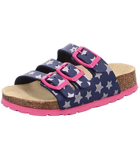 Kinder-Pantoffel mit bequemen Fussbett Schnallenverschluss Robuste Laufsohle Weite: normal Farbe: blau Obermaterial: Leder Innensohle: Synthetik Außensohle: Synthetik ...