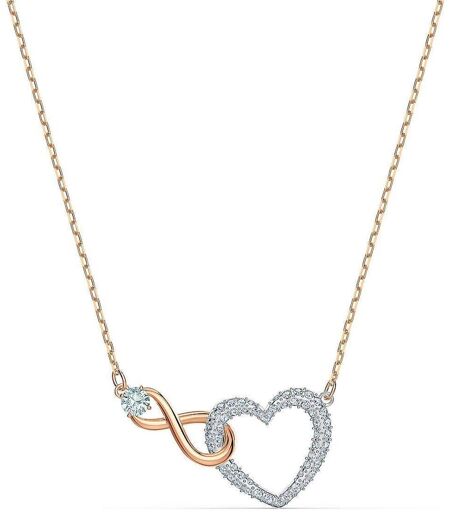 Das ist ewige Liebe und Romantik. In dieser eleganten Halskette von Swarovski sind die Symbole der Liebe und Unendlichkeit eng miteinander verschlungen. Das Unendlichkeitssymbol in einem rotgold glänzenden Finish und das weiß funkelnde Kristallherz verschmelzen in diesem hinreißenden Highlight zur weithin sichtbaren Verheißung ewiger Liebe. Das ist die perfekte Geschenkidee für die Liebe Ihres Lebens. Kollektion: Swarovski Infinity Farbe: Weiß Größe: 38/1.5 x 2.5 cm Material: Metallmix ...