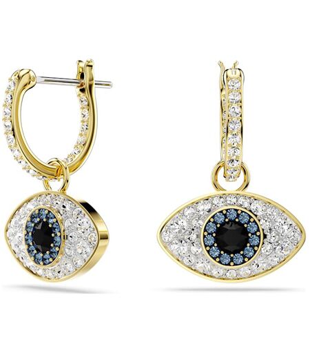 Diese Swarovski Ohrringe lassen Ihrer spirituellen Seite freien Lauf. An den klassischen Kreolen hängt jeweils ein abgerundetes „Evil Eye“-Motiv in blauem, schwarzem und klarem Kristallpavé. Diese Kreationen spielen mit dem traditionellen Glückssymbol und verleihen jedem Outfit einen Hauch von geheimnisvollem Glanz. Kollektion: Symbolica Größe: 2.1 x 1.5 cm Material: Kristalle, Goldlegierungsschicht Farbe: Blau Gewicht (Einzelstück): 2.5 g ...