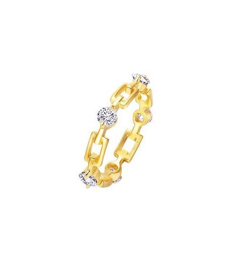 Zarter Damenring mit feinen Kettengliedern und strahlenenden Zirkonia Steinen. Material: Sterling Silber vergoldet Farbe: goldfarben Steine: Zirkonia Steindurchmesser: 3,5 Ringgröße: 54 ...