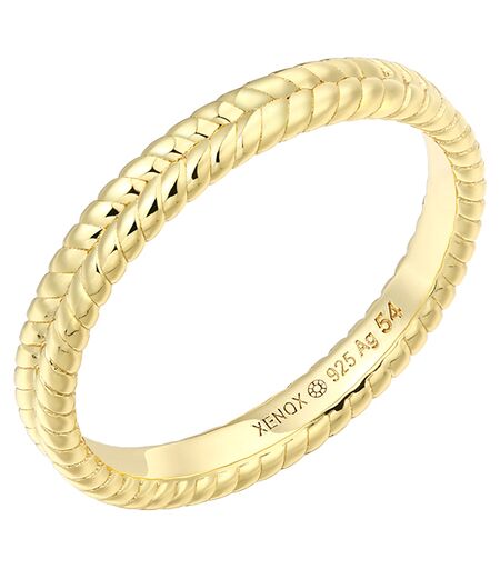 Verleihe deinem Stil mit dem ELLE Ring von Xenox einen unvergleichlichen Glanz, der Eleganz und Alltagstauglichkeit perfekt verbindet. Die Kombination aus hochwertigem 925/- Sterlingsilber und einer zarten 18K Vergoldung macht diesen Ring zu einem echten Highlight in deiner Schmucksammlung. Seine filigran geflochtene Struktur verleiht ihm eine zeitlose Raffinesse, die sowohl schlicht als auch ausdrucksstark wirkt. Ob solo getragen oder im Layering mit weiteren Ringen – der ELLE Ring passt sich jedem Anlass und Stil mühelos an und setzt dabei dezente Akzente. Ringweite: 56 ...