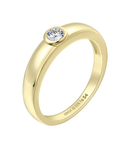 Entdecken Sie den Xenox Damenring, der Ihnen zeitlose Eleganz und einen Hauch von Luxus verleiht. Dieser Ring ist mehr als nur ein Schmuckstück – er unterstreicht Ihre Persönlichkeit und lässt Sie in jedem Moment strahlen. Mit seinem einzeln gefassten Zirkonia zieht er bewundernde Blicke auf sich und macht jeden Anlass besonders. Der Xenox Ring besticht durch seine hochwertige Verarbeitung aus 925er Silber, das vergoldet wurde, um eine warme und edle Optik zu garantieren. Der funkelnde Zirkonia sorgt für das gewisse Etwas und hebt das Design auf ein neues Level. Durch die Kombination aus klassischer Form und modernem Glanz wird dieser Ring zum perfekten Begleiter für Ihren Alltag oder festliche Anlässe. Ob im Büro, bei einem Dinner oder als Geschenk für einen besonderen Menschen – der Xenox Damenring passt sich Ihrem Stil an und setzt modische Akzente. Material: 925 Silber vergoldet, Zirkonia ...