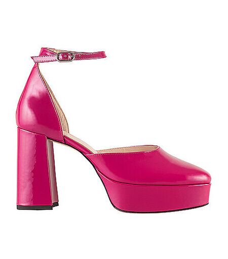 Damen Pumps aus hochwertigem Lackleder Schließt mit Riemchen und Schnalle Blockabsatz Gebürstete Ledersohle Unifarben Absatz: ca. 10cm Farbbezeichnung: Pink Material: Leder ...