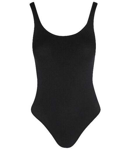 Damen Body aus weichem Baumwoll-Stretch Rundhalsausschnitt Ärmellos Glänzende Optik Druckknopfverschluss Brazilian-Cut Unifarben Farbbezeichnung: Black Material: 48% Baumwolle, 48% Polyamid, 6% Elasthan ...