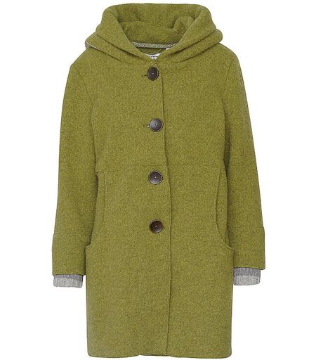 Damen Mantel aus reiner Schurwolle Die hochwertige Schurwolle ist strapazierfähig und wasserabweisend Die gewalkte Struktur aus reiner Wolle schützt vor Kälte Große Kapuze Langarm Schließt mit Knopfleiste Seitliche Eingriffstaschen Oversized geschnitten Unifarben Gestrickt und gewalkt in Tirol, Österreich  Farbbezeichnung: Linde  Länge: ca. 83 cm Material: 100% Schurwolle (Mulesing frei)  ...
