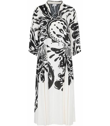 Dieses sommerliche Maxi-Kleid mit luftiger Weite und traumhaftem Allover-Muster ist ein Must-Have-Piece für die moderne Frau. Ein stilvolles und bequemes Kleidungsstück für warme Tage. Feine Sommer-Qualität Großer Paisley-Print Stehkragen aus Ripp-Bündchen mit V-Ausschnitt 3/4-Arm mit elastischem Saum Länge:ca:124cm. Eingriffstaschen bei Smoke-Detail Raffiniertes Smoke-Detail im Vorderteil Lockere Passform Farbbezeichnung: Overcast Material: 100% Viskose ...