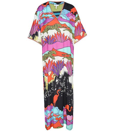 Dieses farbenfrohe Maxikleid besticht durch das exklusive Dessin. Es vereint lebendige Farben mit einem eleganten Design und verleiht Ihrem Look eine stilvolle und sommerliche Note. Ideal für warme Tage. Material: sommerliche Viskose-Qualität kombiniert mit feinem Strick-Stoff Muster: exklusiver Allover-Print und gestreifter Strick-Stoff Fit: körperumspielend Style: modisch, feminin Ausschnitt: V-Ausschnitt Ärmel: Ärmel mit weitem Saum und elastischer Paspel am Saum Verschluss: zum Schlupfen Highlights: hohe, seitliche Schlitze Länge: ca. 140cm Farbbezeichnung: Glazed Grape Material: 51% Viskose ECOVERO 49% Viskose ...