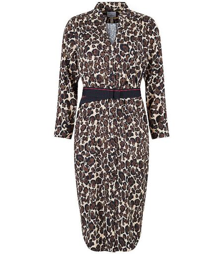 Damen Midikleid aus Viskose mit Stretch-Anteil Tunikaausschnitt 3/4 Ärmel Schließt mit Knopfleiste Seitliche Eingriffstaschen Leoprint Gürtel an der Taille Midilänge Länge: ca. 116cm Farbbezeichnung: Tannin San d Material: 97% Viskose Ecovero 3% Elasthan ...