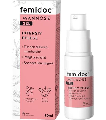 Mit natürlichen Inhaltsstoffen: Aloe Vera, D-Mannose, Hyaluron- und Milchsäure.Wirkungsweise von Femidoc Mannose GelFemidoc Mannose Gel dient zur sanften Pflege der zu Reizungen neigenden Haut, z. B. bei Blasenentzündungen, mechanischer Belastung, z. B. vor und nach Sport und sexuellen Aktivitäten, nach der Geburt, während der Menstruation und in den Wechseljahren.