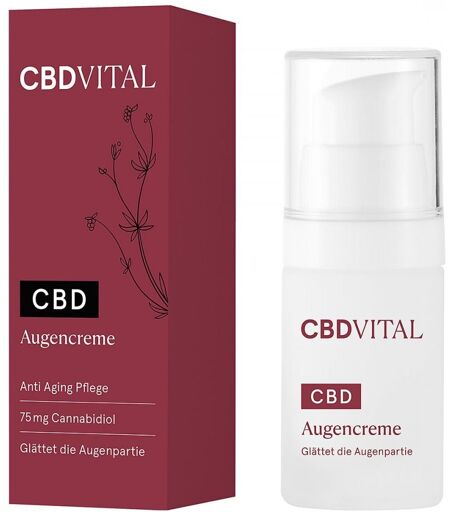 Der Pflege-Aktivstoffkomplex spendet Feuchtigkeit, regeneriert und glättet die empfindliche Haut der Augenpartie. Die Creme von CBD VITAL ist ergiebig sowie reichhaltig. Neben Cannabidiol sorgt der Aktivstoffkomplex mit VinUp Lift, QT40®, Hyaluronsäure, Grüner Kaffee-Extrakt, Bisabolol und Aloe Vera für herausragende Ergebnisse. VinUp Lift ist ein Elixier aus Eiswein-Trauben. QT40® sind Oligosaccharide die aus Meersalat gewonnen werden. Gemeinsam mit Aloe Vera, Hyaluronsäure, Grüner Kaffee-Extrakt und Bisabolol, verleiht die Premium Augencreme ein jugendlich-frisches Aussehen.