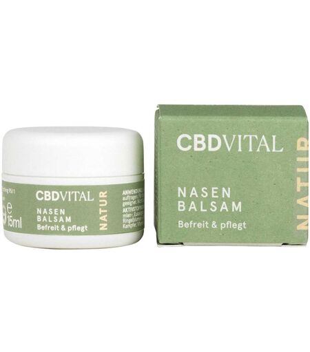 Anwendungsgebiet von Cbd Vital NasenbalsamCbd Vital Nasenbalsam - Atemfreibalsam mit CBD und ausgewählten ätherischen Ölen zur sanften Pflege von Nase, Schleimhäuten und Atemwegen.Ob bei Erkältungssymptomen, nach einer stressigen Woche oder einfach für eine wohltuende Pause im Alltag – dieser pflanzliche Balsam schenkt Ihnen Momente zum freien Durchatmen.Die wertvollen ätherischen Öle aus Thymian, Eukalyptus, Pfefferminze und Tannennadel bieten natürliche Unterstützung für die Atemwege. Menthol und Kampfer sorgen mit ihrer kühlenden Frische für ein angenehmes, erfrischendes Gefühl und tragen zu einem klaren Kopf bei. Ringelblumen- und Rosmarinextrakte, kombiniert mit CBD und Vitamin E, pflegen und beruhigen die empfindliche Nasenhaut.Praktisch und handlich – der Balsam passt in jede Tasche und ist ideal für unterwegs. Einfach auftragen, tief durchatmen und die anhaltende Frische genießen – für mehr Wohlbefinden bei jedem Atemzug.Wirkungsweise von Cbd Vital NasenbalsamWirkstoffe / Inhaltsstoffe / ZutatenInhaltsstoffe von Cbd Vital Nasenbalsam : Inhaltsstoffkomplex: CBD, ätherisches Thymian-, Eukalyptus-, Pfefferminz- und Tannennadelöl, Ringelblumen- und Rosmarin-Extrakt, Menthol, Kampfer, Vitamin EIngredients: olus oil*/**, helianthus annuus seed oil*, lanolin*, cera alba*/**, menthol*, camphor*, hydrogenated vegetable oil*, cannabis sativa seed oil*/**, eucalyptus globulus leaf oil*, thymus vulgaris leaf oil*, mentha piperita oil*, tocopherol*, melaleuca alternifolia leaf oil*/**, abies alba needle oil*, eugenia caryophyllus bud oil*/**, butyrospermum parkii butter*/**, thymus vulgaris leaf extract*/**, candelilla cera*, cannabidiol*, rosmarinus officinalis (rosemary) leaf extract*/**, calendula officinalis flower extract*/**, geraniol***, citral***, eugenol***, limonene***, linalool***, alpha-terpinene***, terpinolene***, isoeugenol***, benzyl benzoate***, benzyl alcohol***, betacaryophyllene**** Ingredients from natural origin (100 %)** In ...