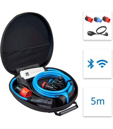 Die hochinnovative, transportable Ladeeinheit NRGkick ist eine der sichersten und intelligentesten Ladeeinheiten am Markt. Mit NRGkick ist es möglich, an jeder Standardsteckdose und sogar an öffentlichen Ladesäulen schnellstmöglich zu laden (mit bis zu 22 kW, 1-/2-/3-phasig). Das 32A 5m Set Optimal enthält die Ladeeinheit NRGkick mit 5 Meter Ladekabel, einen Steckeraufsatz Typ 32A 5Pol (max. 32A / 22kW), einen Steckeraufsatz Typ 16A 5Pol (max. 16A / 11kW), einen Steckeraufsatz Typ 16A 3Pol (max. 16A / 3,7kW) und einen Steckeraufsatz "Schutzkontakt" (EU, max. 13A). Das bahnbrechende, patentierte Sicherheits-Steckersystem mit Temperaturüberwachung an jedem Phasenpin sorgt dafür, dass verschmorte Steckdosen ausgeschlossen sind, egal ob CEE32, CEE16 oder normale Haushaltssteckdose. Innovationen wie das autonome Lastmanagement, Blackout-Schutz, örtlich zuordenbare Ladeberichte über WLAN und die Möglichkeit, jederzeit weitere Funktionen über die App upgraden zu können (wie z.B. photovoltaik-geführtes Laden mit Phasenumschaltung), belegen, dass man mit NRGkick technisch nicht nur bloß auf der Höhe der Zeit, sondern weit darüber hinaus liegt. Mit NRGkick können alle E-Autos mit Typ 2 Schnittstelle, egal ob 1-, 2- oder 3-phasig, mit der maximal möglichen AC-Ladegeschwindigkeit geladen werden (bis zu 22 kW). Im Vergleich zur Haushaltssteckdose bedeutet das, dass die Ladung bis zu 10x schneller erfolgt. Beim Anschluss an gewöhnliche Haushaltssteckdosen beachtet NRGkick natürlich die jeweils länderspezifisch geltenden Vorschriften. NRGkick bietet zum Teil noch nie dagewesenen Sicherheitsfunktionen, wie z.B das patentierte Sicherheits-Steckersystem mit Abzieherkennung und Lichtbogenschutz sowie Temperaturüberwachung für jeden Steckeraufsatz an jedem einzelnen Phasenpin, Schutzleiterprüfung mittels Schleifenimpedanzmessung, inkludierten Fehlerstromschutz (AC, DC + 6 mA), Netzfrequenzdiagnose, automatische Selbstprüfung, Diebstahl- und Manipulationsschutz, Überfahrsicherheit und mehr. NRGkick verfügt über eine Bluetooth- und WLAN Schnittstelle sowie Zugang zur NRGkick Cloud und der Web API. Über die kostenfreie NRGkick App für iOS und Android kann man somit jederzeit auf die Ladeeinheit zugreifen und alle erweiterten Funktionen nutzen. Damit Unbefugte keinen Zugriff auf den NRGkick haben, ist dieser passwortgeschützt. Nur mit dem korrekten Passwort ist es möglich, Einstellungen in der App vorzunehmen. Die geringen Abmessungen und die handliche Größe sorgen dafür, dass sie im Gegensatz zu fest installierten Wallboxen bei Bedarf ganz einfach überall hin mitgenommen werden kann. Dank des extrem geringen Gewichts von weniger als vier Kilogramm bei der 5m Variante und der besonders flexiblen, hochwertigen Ladeleitung ist NRGkick besonders platzsparend auf Reisen. NRGkick ist nicht nur upgradefähig, sondern via Over-the-Air (OTA) Updates auch absolut zukunftssicher, da neue Funktionen und Verbesserungen automatisch vom NRGkick heruntergeladen werden und sofort zur... ...