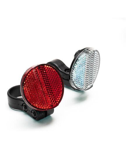 Reflektor-Set bestehend aus weißem Reflektor für vorne und rotem Reflektor für hinten Rückstrahlfläche jeweils 20 cm² Größe woom 2 & 3: passend für alle Lenkerdurchmesser von 19 mm bis 21 mm (weißer Reflektor) und Sattelstützendurchmesser (roter Reflektor) von 22,2 mm Größe woom 4 – 6: passend f ...