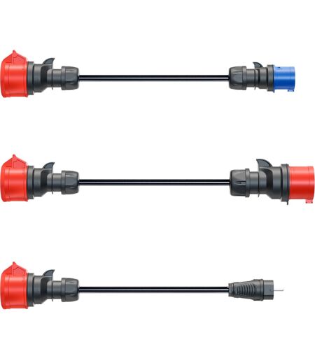Die 30cm langen Adapterkabel CH-04-33 von go-e sorgen für zuverlässiges Laden mit dem go-e Charger Gemini flex 11 kW (16A CEE rot Drehstromstecker) an normalen Haushalts-Steckdosen, Campingsteckdosen und CEE rot 32A Drehstrom-Steckdosen. Mit dem kompletten Satz von Adaptern kann man sein Auto immer und überall aufladen, unabhängig davon, welche Art von Steckdosen in der jeweiligen Region verwendet werden. Nicht alle üblichen Haushaltssteckdosen sind aber für einen Ladestrom von 16A ausgelegt. Es wird empfohlen, mit diesem Adapter mit 10A zu laden. In einigen Ländern wie Großbritannien ist es jedoch nicht erlaubt, mit 10A an einer Haushaltssteckdose zu laden, deshalb ist es zur Verwendung des Adapters erforderlich, die Ländereinstellung in der go-e Charger App zu verwenden. Das 3-teilige Adapter-Set ist auch mit dem go-e Charger HOME+ 11 kW kompatibel. ...