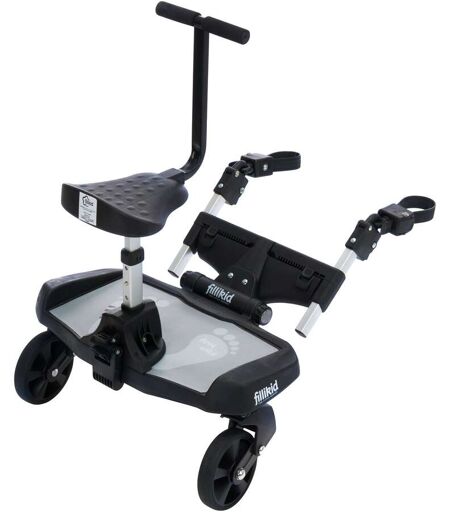 Müdes Geschwisterkind? Dann wird es Zeit für das Filliboard von Fillikid. Auf dem praktischen Buggyboard kann das ältere Kind bequem Platz nehmen und auf dem Kinderwagen mitfahren. Buggyboard Filliboard Wide von Fillikid passend für nahezu alle Kinderwagen und Buggys 3-fach höhenverstellbarer Sitz Transportgurt Gewicht: Buggy Board 2,75 kg, Sitz 1 kg Belastbarkeit: bis 20 kg Maße: 45 x 46 x 22cm Das Filliboard ist eine universelle, um 180 Grad drehbare Befestigung – so passt es an beinahe alle Buggys und Kinderwagen. Die Montage gelingt ganz ohne zusätzliches Werkzeug an den waagrechten und senkrechten Streben. Auf dem praktischen Zusatzsitz kann sich das ältere Geschwisterkind unterwegs bequem ausruhen. Der Sitz lässt sich dreifach in der Höhe verstellen – so passt er für kleinere und größere Kinder bis zu einem Körpergewicht von 20 Kilogramm. Durchdacht: Das Board wird gerade nicht gebraucht? Dann kannst Du es mithilfe des praktischen Transportgurts am Kinderwagengriff befestigen. ...