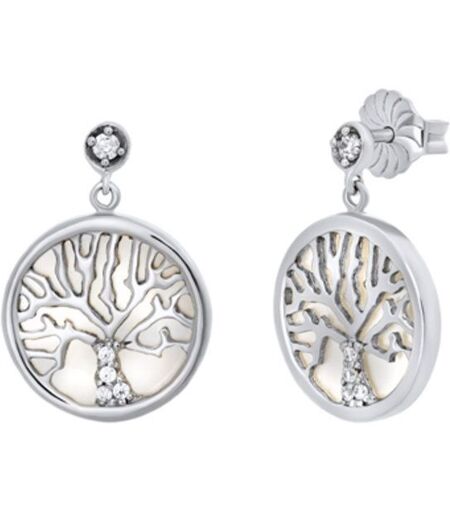 Ohrringe aus Sterling Silber mit Lebensbaum-Motiv. Material: Sterling Silber, perlmutt Farbe: silberfarben Steine: Zirkonia Durchmesser: 1,4 cm ...