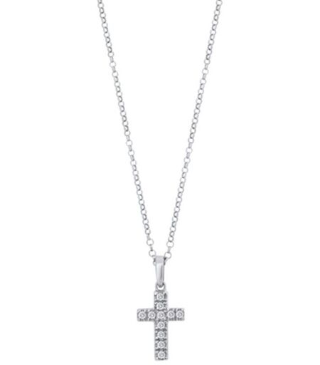 Schlichte Halskette mit funkelndem Kreuz-Anhänger als Highlight. Material: Sterling Silber Farbe: silberfarben Steine: Zirkonia Länge: 42 cm Kreuz Maße: 1,2 x 0,8 cm ...