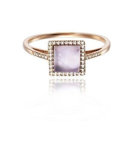 Dieser schöne Ring darf ihn keinem Schmuckkästchen einer modernen Frau fehlen. Der Blickfang ist dabei der lila schimmernde Amethyst, der von 42 Diamanten umrahmt wird. Material: 585 Rotgold Farbe: rosegoldfarben Steine: Amethyst, Diamanten 0,09 ct/Hsi Maße: 8 x 8 mm ...