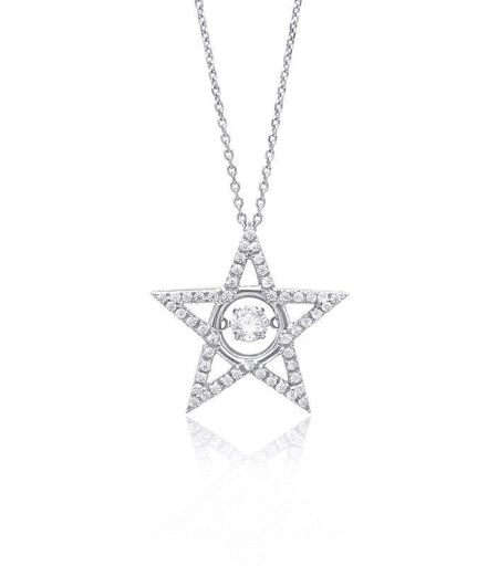 Das Highlight dieser silberfarbenen Halskette mit Sternanhänger ist der bewegliche Dancing Stone Stein in der Mitte. Umrahmt wird dieser von zauberhaften Zirkonia Steinen. Material: Sterling Silber Farbe: silberfarben Steine: Zirkonia Verschluss: Karabiner Länge: 46 cm ...