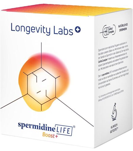 Anwendungsgebiet von SpermidineLife Boost+ PulverSpermidineLife Boost+ Pulver: Zellerneuerung zum Trinken.¹Zellen sind die kleinste Einheit des Lebens, spielen aber eine große Rolle im menschlichen Körper. Die Zelltypen haben verschiedene Aufgaben, altern unterschiedlich schnell und haben eine Vielzahl an Mechanismen, um sich zu erneuern und aktiv zu bleiben. Bei der Erhaltung der Zellfunktionen spielt der Schutz vor oxidativem Stress eine wichtige Rolle.Basierend auf mehr als 10 Jahren Forschung in Kooperation mit international renommierten Zellforschern wurde SpermidineLife Boost+ Pulver entwickelt.SpermidineLife Boost+ Pulver ist ein Nahrungsergänzungsmittel zum Auflösen und Trinken mit der innovativen Kombination aus natürlichem Weizenkeimextrakt mit 3 mg Spermidin pro Tagesdosis und Vitamin B1, ergänzt durch Zink, das die körpereigene Zellerneuerung unterstützt.¹Spermidin im CelVio Complex®Spermidin ist ein natürliches Polyamin und kommt in fast allen unseren Zellen vor. Seit der Entdeckung der Autophagie 2016 wird zu Spermidin viel geforscht. Mit höherem Alter nimmt der Gehalt an Spermidin in den Zellen ab. Der natürliche CelVio Complex® besteht aus Weizenkeimextrakt mit hohem Spermidingehalt. Mit besonders viel natürlichem Spermidin.Zink ist ein wichtiges Spurenelement für den Zellschutz und die Zellerneuerung. Es ist dafür bekannt, dass es zum Schutz der Zellen vor oxidativem Stress beiträgt, aber auch eine Funktion bei der Zellteilung hat und eine normale DNASynthese unterstützt.Vitamin B1, auch als Thiamin oder Nervenvitamin bekannt, ist ein wasserlösliches Vitamin und muss regelmäßig über die Nahrung aufgenommen werden, da es im Körper nicht gespeichert werden kann. Vitamin B1 trägt aber nicht nur zur normalen Funktion des Nervensystems bei, sondern leistet auch einen Beitrag zur normalen psychischen Funktion und unterstützt gleichzeitig den Energiestoffwechsel.Wirkstoffe / Inhaltssto ...