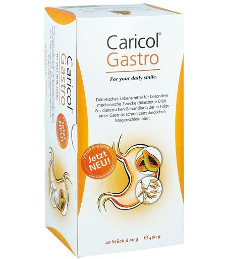 Anwendungsgebiet von Caricol Gastro BeutelCaricol Gastro Beutel ist ein diätetisches Lebensmittel für besondere medizinische Zwecke (Bilanzierte Diät)Wirkungsweise von Caricol Gastro BeutelCaricol Gastro Beutel enthält die wertvollen Inhaltsstoffe einer patentierten Bio-Haferzubereitung sowie von Caricol®, einem patentierten Extrakt aus baumgereiften Bio-Papayas.